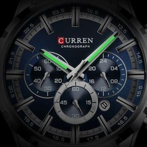 Marca: Curren Modelo: 8355 Estilo: Esporte Movimento: QUARTZ Fecho: Fechos para Pulseiras Profundidade de Resistência a Água: 3Bar Material do Invólucro: Liga Comprimento da Pulseira: 24cm Espessura da caixa: 13mm Largura de banda: 24mm Formato do Estojo: Redondo Tipo de Item: Relógios de pulso de quartzo Material da Faixa: Aço inoxidável Cronômetro Resistente a Choques Data Automática Cronógrafo Calendário Completo Múltiplos Fusos Horário À Prova D'Água Diâmetro Dial: 47mm Janela Dial tipo de Material: Hardlex