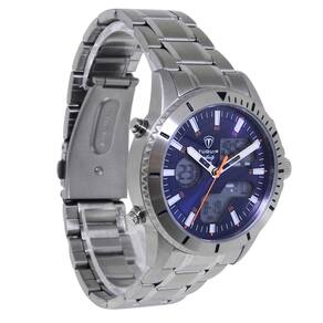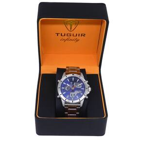 Marca: Tuguir Categoria: AnaDigi Analógico: Sim (1 Horário) Ponteiros Fluorescentes: Não Digital: Sim (1 Horário) Calendário: Sim Despertador: Sim Mostra o Dia da Semana: Sim Mostra o Dia do Mês: Sim Cronômetro: Sim Luz: Sim Cor da Iluminação: Verde Resistente à Água: 5 ATM - Respingos: Sim - Chuva: Sim - Lavar Carro: Sim - Lavar Louça: Sim - Natação: Sim - Mergulho: Não Característica do Vidro: Cristal Mineral Tipo de Fecho: Dobrável com Botão Cor da Caixa: Prata Material da Caixa: Aço Formato da Caixa: Redondo Diâmetro da Caixa: 43,00 (mm) Espessura da Caixa: 14,00 (mm) Cor da Pulseira: Prata Material da Pulseira: Aço Largura da Pulseira: 19,50 (mm) Comprimento Máximo da Pulseira: 270,00 (mm) Alimentação: Bateria Interna Peso Líquido: 0,130 Kg Modelo: GCS-1269 Cor Predominante: Prata Cor Diferencial: Azul Garantia: 12 Meses