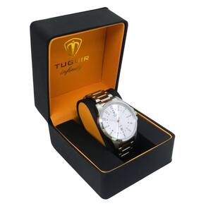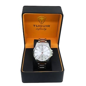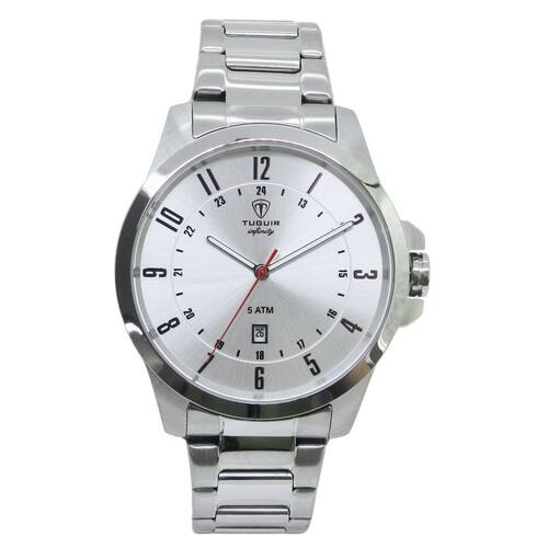 Relógio Masculino de Aço Tuguir Analógico Infinity 6117H Prata e CinzaMarca: Tuguir Categoria: Analógico Analógico: Sim (1 Horário) Ponteiros Fluorescentes: Não Digital: Não Luz: NãoResistente à Água: 5 ATM (Pode ser utilizado para nadar no raso, por pouco tempo submerso) - Respingos: Sim - Chuva: Sim - Lavar Carro: Sim - Lavar Louça: Sim - Natação: Sim - Mergulho: Não Característica do Vidro: Cristal Mineral Tipo de Fecho: Dobrável com Botão Cor da Caixa: Prata Material da Caixa: Aço Formato da Caixa: Redondo Diâmetro da Caixa: 45,00 (mm) Espessura da Caixa: 10,00 (mm) Cor da Pulseira: Prata Material da Pulseira: Aço Largura da Pulseira: 20,00 (mm) Comprimento Máximo da Pulseira: 280,00 (mm) Alimentação: Bateria Interna Peso Líquido: 0,120 Kg Modelo: Infinity 6117H Cor Predominante: Prata Cor Diferencial: Cinza Garantia: 12 MesesConteúdo da Embalagem: 01 Relógio 01 Embalagem 01 Termo de Garantia