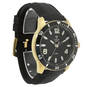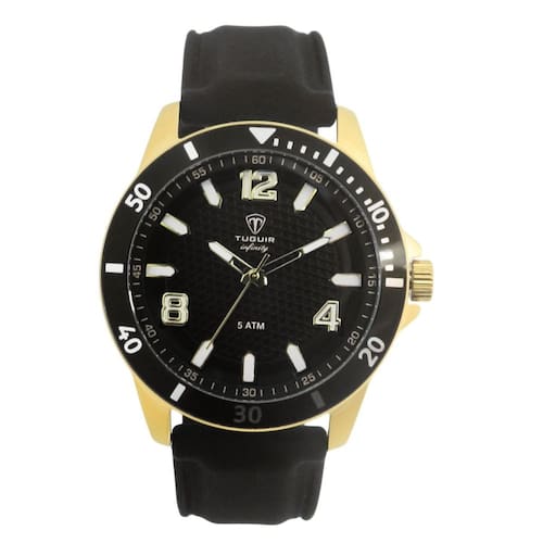 Relógio Masculino de Aço Tuguir Analógico Infinity 9169B Dourado e PretoMarca: Tuguir Categoria: Analógico Analógico: Sim (1 Horário) Ponteiros Fluorescentes: Não Digital: Não Luz: NãoResistente à Água: 5 ATM (Pode ser utilizado para nadar no raso, por pouco tempo submerso) - Respingos: Sim - Chuva: Sim - Lavar Carro: Sim - Lavar Louça: Sim - Natação: Sim - Mergulho: Não Característica do Vidro: Cristal Mineral Tipo de Fecho: Fivela Cor da Caixa: Dourado Material da Caixa: Aço Formato da Caixa: Redondo Diâmetro da Caixa: 43,00 (mm) Espessura da Caixa: 10,00 (mm) Cor da Pulseira: Preto Material da Pulseira: Silicone Largura da Pulseira: 21,50 (mm) Comprimento Máximo da Pulseira: 260,00 (mm) Alimentação: Bateria Interna Peso Líquido: 0,080 Kg Modelo: Infinity 9169B Cor Predominante: Dourado Cor Diferencial: Preto Garantia: 12 MesesConteúdo da Embalagem: 01 Relógio 01 Embalagem 01 Termo de Garantia
