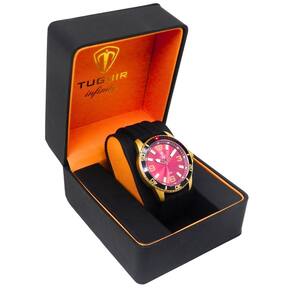 Relógio Masculino de Aço Tuguir Analógico Infinity 9169C Dourado e Preto e VermelhoMarca: Tuguir Categoria: Analógico Analógico: Sim (1 Horário) Ponteiros Fluorescentes: Não Digital: Não Luz: NãoResistente à Água: 5 ATM (Pode ser utilizado para nadar no raso, por pouco tempo submerso) - Respingos: Sim - Chuva: Sim - Lavar Carro: Sim - Lavar Louça: Sim - Natação: Sim - Mergulho: Não Característica do Vidro: Cristal Mineral Tipo de Fecho: Fivela Cor da Caixa: Dourado Material da Caixa: Aço Formato da Caixa: Redondo Diâmetro da Caixa: 43,00 (mm) Espessura da Caixa: 10,00 (mm) Cor da Pulseira: Preto Material da Pulseira: Silicone Largura da Pulseira: 21,50 (mm) Comprimento Máximo da Pulseira: 260,00 (mm) Alimentação: Bateria Interna Peso Líquido: 0,070 Kg Modelo: Infinity 9169C Cor Predominante: Dourado Cor Diferencial: Preto e Vermelho Garantia: 12 MesesConteúdo da Embalagem: 01 Relógio 01 Embalagem 01 Termo de Garantia