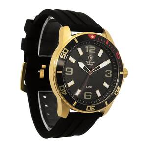 Relógio Masculino de Aço Tuguir Analógico Infinity 9169C Dourado e Preto e VermelhoMarca: Tuguir Categoria: Analógico Analógico: Sim (1 Horário) Ponteiros Fluorescentes: Não Digital: Não Luz: NãoResistente à Água: 5 ATM (Pode ser utilizado para nadar no raso, por pouco tempo submerso) - Respingos: Sim - Chuva: Sim - Lavar Carro: Sim - Lavar Louça: Sim - Natação: Sim - Mergulho: Não Característica do Vidro: Cristal Mineral Tipo de Fecho: Fivela Cor da Caixa: Dourado Material da Caixa: Aço Formato da Caixa: Redondo Diâmetro da Caixa: 43,00 (mm) Espessura da Caixa: 10,00 (mm) Cor da Pulseira: Preto Material da Pulseira: Silicone Largura da Pulseira: 21,50 (mm) Comprimento Máximo da Pulseira: 260,00 (mm) Alimentação: Bateria Interna Peso Líquido: 0,075 Kg Modelo: Infinity 9169C Cor Predominante: Dourado Cor Diferencial: Preto e Vermelho Garantia: 12 MesesConteúdo da Embalagem: 01 Relógio 01 Embalagem 01 Termo de Garantia