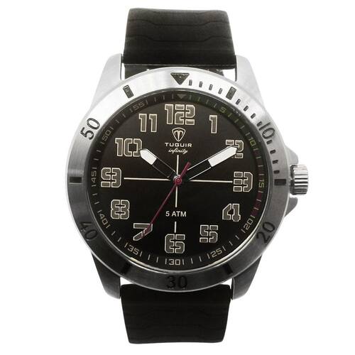 Relógio Masculino de Aço Tuguir Analógico Infinity 9169H Prata e Preto e vermelhoMarca: Tuguir Categoria: Analógico Analógico: Sim (0 Horário) Ponteiros Fluorescentes: Não Digital: Não Luz: NãoResistente à Água: 5 ATM (Pode ser utilizado para nadar no raso, por pouco tempo submerso) - Respingos: Sim - Chuva: Sim - Lavar Carro: Sim - Lavar Louça: Sim - Natação: Sim - Mergulho: Não Característica do Vidro: Cristal Mineral Tipo de Fecho: Fivela Cor da Caixa: Prata Material da Caixa: Aço Formato da Caixa: Redondo Diâmetro da Caixa: 43,00 (mm) Espessura da Caixa: 10,50 (mm) Cor da Pulseira: Preto Material da Pulseira: Silicone Largura da Pulseira: 21,50 (mm) Comprimento Máximo da Pulseira: 260,00 (mm) Alimentação: Bateria Interna Peso Líquido: 0,080 Kg Modelo: Infinity 9169H Cor Predominante: Prata Cor Diferencial: Preto Garantia: 12 MesesConteúdo da Embalagem: 01 Relógio 01 Embalagem 01 Termo de Garantia