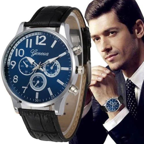 Relógio masculino de pulso geneva men fundo azulado Relógio masculino Marca: geneva Estilo: social / casual Descrição do mostrador: Material: metal de alta qualidade Exposição: analógico Formato: redondo Espessura: 8 mm Diâmetro: 40 mm aprox. Peso: 46 g