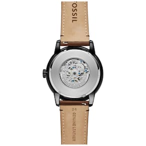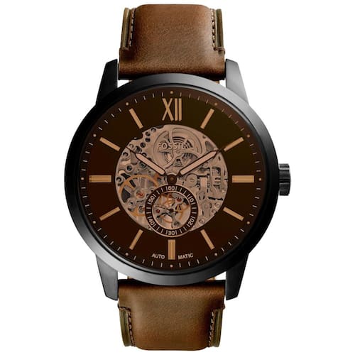 A Fossil sempre foi inspirada pela criatividade e engenhosidade americana. Desde 1984, nós nos esforçamos para trazer uma nova vida à indústria, criando relógios e acessórios modernos e de qualidade divertidos e acessíveis. Transparentemente cool Townsman revela o funcionamento interno do relógio com um inovador mostrador transparente. Quer seja a vestir se para o escritório ou para o fim de semana, este relógio tem a marca da distinção. Tamanho da caixa Tamanho da banda movimento mecânico automático com display analógico lente de cristal mineral endurecido resiste a arranhões importado Caixa de aço inoxidável preto com mostrador marrom pulseira de couro marrom com fecho de fivela intercambiável com todas as pulseiras de relógio fóssil de Resistente à água até 50 m 165 pés adequado para curtos períodos de natação recreativa e ducha, mas não para mergulho ou snorkel