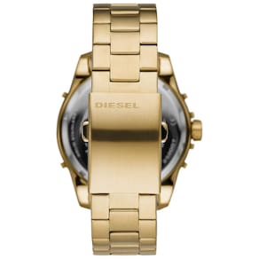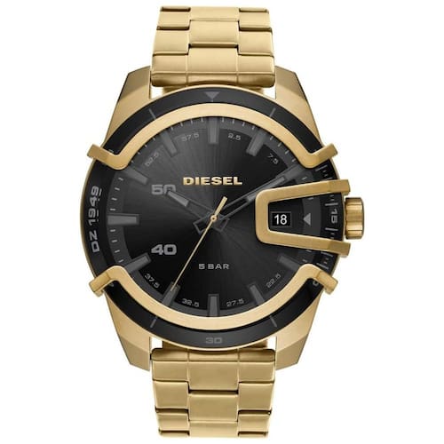 O, irônico e nunca tímido, Diesel não segue tendências ele os cria. Com um visual distinto e uma voz única, a Diesel avança constantemente no estilo. O relógio Caged da Diesel apresenta um mostrador preto sunray com indexes tonais, caixa e clipe em aço inoxidável dourado, movimento com três ponteiros e pulseira em aço inoxidável dourado. Tamanho da caixa , Tamanho da banda face de cristal mineral resiste a arranhões movimento de quartzo com display analógico de três ponteiros e janela de data importado Caixa redonda de aço inoxidável banhada a ouro com mostrador preto pulseira de aço inoxidável banhado a ouro com fecho de implantação Resistente à água até 50 m 165 pés pode ser ao nadar em águas rasas 5 ATM