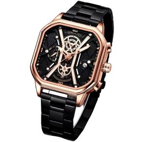 Relógio Masculino de Quartzo em Aço Inoxidável Impermeável Design Quadrado Luminoso - Preto Fosco