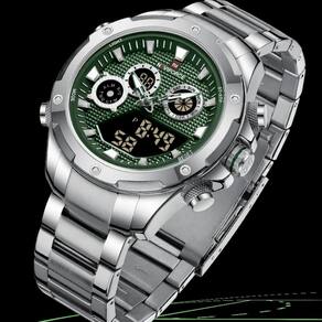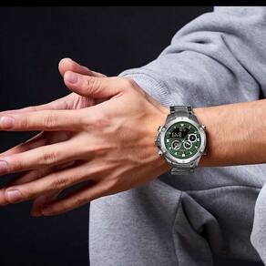 Relógio masculino digital em aço inoxidável cronógrafo impermeável esportivo - verde