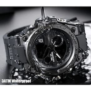 Relógio masculino digital preto design led à prova d'água.