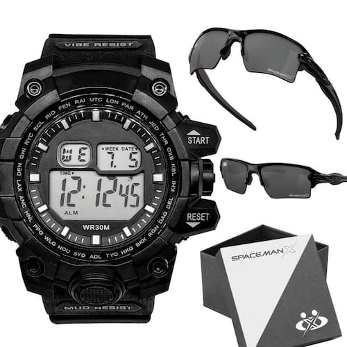 Relogio Masculino Digital Prova Dagua + Oculos Proteção Uv