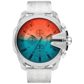 Características Composição do Vidro: Cristal Mineral flame fusion resistente a riscos. Composição da caixa: Transparente Medidas Largura da Caixa: 50 mm Espessura da Caixa: 14 mm Resistência à Água Pressão: 100 ATM Resistência a Respingos: Sim Resistência à Água Corrente: Sim Resistência a Mergulho em Piscina: Sim Funções do Relógio Dia do Mês Cronômetro
