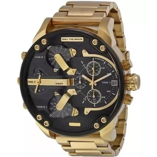Características Composição do Vidro: Cristal Mineral flame fusion resistente a riscos. Material da Caixa: Aço inox Cor da Caixa:Dourado Material da Pulseira: Aço Inox Cor da Pulseira: Dourado Medidas Largura da Caixa: 57 mm Espessura da Caixa: 14 mm Resistência à Água Pressão: 30 Metros Funções Dia do Mês Cronômetro