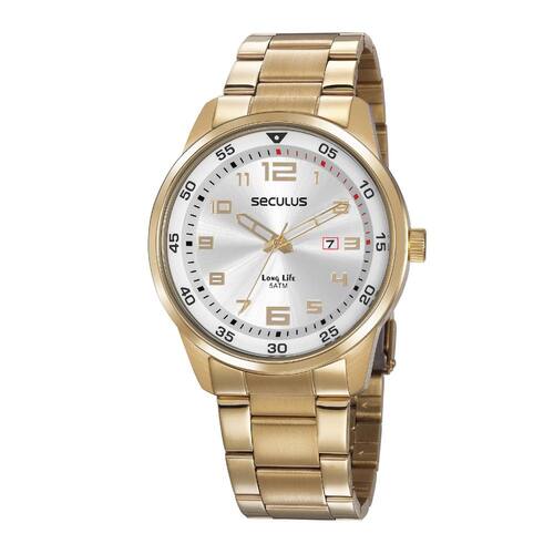 Descrição geral: Relógio Masculino Dourado em Aço Seculus 20802GPSVDA1, com de 02 anos, a prova dágua 50 metros , vidro em cristal mineral. Descrição detalhada: Gênero: Masculino Material da Caixa: Aço Inoxidável Cor da Caixa: Dourado Cor do mostrador: Branca Material da Pulseira: Aço Cor da Pulseira: Dourado Tipo de Vidro: Cristal Mineral Resistência a água: 50 Metros Tamanho da Caixa:4,6 médio Estilo: Casual / Social Funções: ógico Tempo de : 02 Anos KIT: Não Mecanismo: Quartz/Bateria Tipo: ógico Acompanha: Estojo, e Certificado de . A marca Seculus é nacionalmente reconhecida pela qualidade e durabilidade de seus relógios. Os relógios da marca contam com 2 anos de , tranquilizando a você consumidor, quanto a qualidade desta tão consagrada marca. Com modelos caracterizados por sua versatilidade de uso, ele é ideal pra você que procura um relógio para todas as ocasiões, sem dúvida o Seculus é a sua opção Marca: Não Informado Ean: 7893689892584