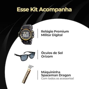 Este kit exclusivo é perfeito para os homens que buscam estilo e funcionalidade em seus acessórios. Combinando um relógio digital masculino robusto e um par de óculos de sol elegantes, este conjunto é ideal para complementar seu visual com um toque de sofisticação.