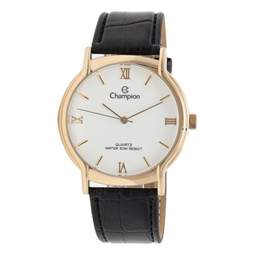 Relógio Champion CN20006B dourado, com design elegante e prático. Material da caixa: Metal Material da pulseira: Couro, Fechamento: Fivela , Mostrador: Com algarismos romanos, fundo perolado e ponteiros de horas, minutos e segundos, Fundo: Rosca, Medidas da caixa: 4cm de altura e 4cm de largura, Medidas da pulseira: 15cm de comprimento e 2cm de largura, Resistência à água: 50m, : 1 ano, pelo fabricante. Marca: Não Informado