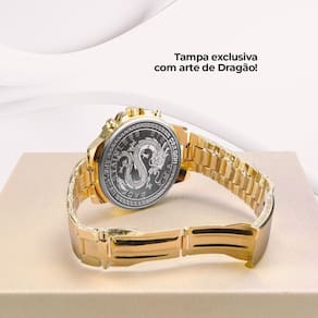 - Relógio masculino analógico Orizom Spaceman Dragon banhado a ouro, com mostrador preto e tampa blindada exclusiva de dragão