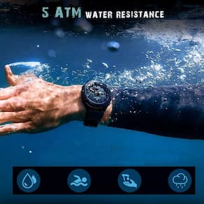 Especificações: [Durabilidade inigualável]: Mergulhe sem preocupações até 50 metros graças à resistência superior à água e ao vidro Hardlex que protege o visor contra arranhões e impactos, mantendo-o sempre impecável. [Estilo versátil]: O design esportivo com mostrador redondo em liga de alta qualidade e a confortável pulseira de silicone tornam este relógio um acessório versátil e elegante, adequado tanto para festas sofisticadas quanto para atividades ao ar livre. [Funcionalidades avançadas]: Equipado com luz de fundo, alarme e múltiplos fusos horários, este relógio é perfeito para os viajantes globais que necessitam de informações precisas em qualquer parte do mundo. [Desempenho contínuo]: Alimentado por uma bateria duradoura, você pode confiar no movimento quartzo-digital deste relógio para uma cronometragem eficaz, quer esteja numa reunião de negócios ou a fazer exercícios intensos. [Precisão nos detalhes]: Com um mostrador de diâmetro entre 40 e 44 mm e uma banda ajustável de 24 cm, este relógio foi minuciosamente desenvolvido para se ajustar perfeitamente ao seu pulso, oferecendo o máximo conforto e precisão.