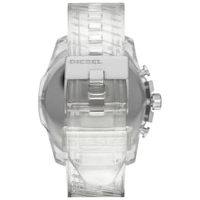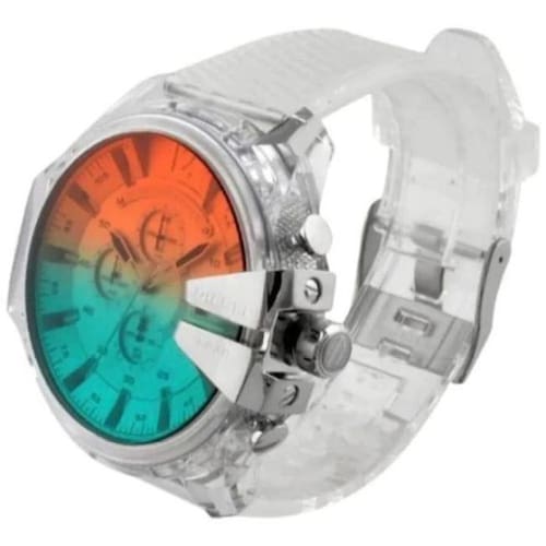 Características Composição do Vidro: Cristal Mineral flame fusion resistente a riscos. Composição da caixa: Transparente Medidas Largura da Caixa: 50 mm Espessura da Caixa: 14 mm Resistência à Água Pressão: 100 ATM Resistência a Respingos: Sim Resistência à Água Corrente: Sim Resistência a Mergulho em Piscina: Sim Funções do Relógio Dia do Mês Cronômetro ENVIAMOS em até 24H úteis Marca: Não Informado