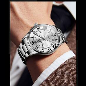 relógio de pulso de design clássico especialmente criado para homens, O relógio vem com vidro 100% resistente durável e um mostrador fácil de ler as horas, movimento de quartzo oferece um visual elegante de alta qualidade e bateria durável e precisa. Relógio versátil combina com todas as ocasiões, sejam elas formais ou casuais. Use este relógio desde trabalho, lazer até atividades internas e externas ou para uso diário. são um presente perfeito para você e seus entes queridos.