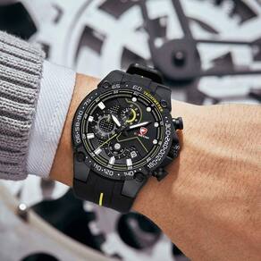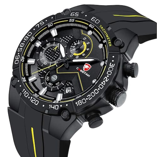 Características: Marca: Cheetah Modelo: 1606 Categoria: Analógico Estilo: Esportivo Movimento: Quartzo Cronógrafo: Ponteiros funcionais Calendário: Sim Diâmetro da caixa visor : 45 mm Espessura da caixa visor : 14 mm Tamanho da pulseira: 225 mm Largura da pulseira: 17.5 mm Tipo de fecho: Fivela Simples Material do Visor: Vidro Mineral Material da caixa: Liga Material da pulseira: Silicone Peso liquido: Cerca de 106g Alimentação: Bateria Resistente à Água: 5ATM Garantia: 03 Meses Conteúdo da Embalagem: - Relógio - Manual de instruções em inglês - Certificado internacional de originalidade