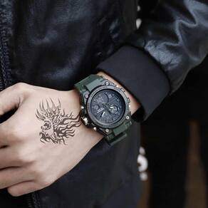Relógio masculino esportivo sanda modelo 739 estilo militar 1545 Cor: verde Produto diretamente do distribuidor autorizado pela marca sanda, com excelente qualidade de fabricação com durabilidade incomparável devido aos ótimos materiais aplicados na fabricação. Tamanho único e ajustável Produto de luxo e com muito estilo. Não acompanha estojo. Especificações Tipo de item: relógios de pulso de quartzo Estilo: esporte Característica: calendário completo, resistente a choques, cronômetro, data automática, à prova d'água, mergulhador, cronógrafo, luz negra, múltiplos fusos horários, natação, alarme Movimento: duplo, quartzo Material da faixa: borracha - silicone Material do invólucro: liga k34 Não acompanha caixa de presente nem estojo Profundidade de resistência a água: 3bar Fecho: fivelas Comprimento da pulseira: 24cm Largura de banda: 23mm Espessura da caixa:17mm Janela dial tipo de material: resina Modelo número: 739 Diâmetro dial:55mm À prova d' água - até 30m - importante: não tomar banho quente com o relógio nem apertar nenhum botal quando submerso. Smart new tech Sanda739 Marca: Não Informado