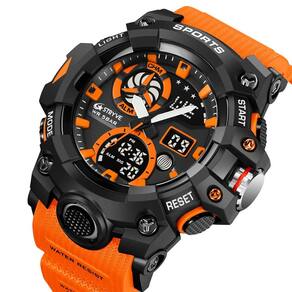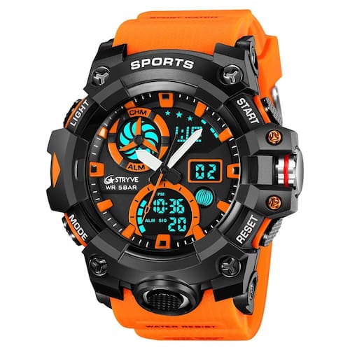 Características: Marca: Stryve Modelo: S8027 Categoria: AnaDigi Analógico: Sim Movimento: Quartzo Ponteiros Fluorescentes: Sim Digital: Sim 2 Horários Formato da hora: 12/24 Despertador: Sim Bip de Hora: Sim Calendário: Sim Mostra o Dia da Semana: Sim Mostra o Dia do Mês: Sim Cronômetro: Sim Cronômetro Regressivo timer : Não Luz: Sim Cor da Iluminação: Verde Resistente à Água: 5BAR/5ATM/50M não pressionar os botões quando estiver submerso - Respingos: Sim - Chuva: Sim - Lavar Louça: Sim - Natação: Sim - Mergulho: Não Característica do Vidro: Acrílico Tipo de Fecho: Fivela Simples Material da Caixa: Liga de Zinco e Plástico Material da Pulseira: Borracha Formato da Caixa: Redondo Diâmetro da Caixa: 55 mm Espessura da Caixa: 19 mm Largura da Pulseira: 22 mm Comprimento da pulseira: 265 mm Ajustável Alimentação: Bateria Peso Líquido: 72g : 03 Meses Conteúdo da Embalagem: - Relógio - Manual de Instruções