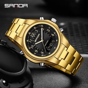 Especificações: [Pulseira que dura] Feita de aço inoxidável, garante resistência e durabilidade enquanto complementa qualquer visual com um toque de sofisticação. [Caixa robusta] A liga de zinco oferece proteção incomparável, mantendo o mecanismo interno seguro e funcional por anos. [Estilo digital duplo] Combinando exibição digital e analógica, adapta-se perfeitamente às suas necessidades de estilo e praticidade diária. [Resistência à água] Perfeito para atividades versáteis, da academia ao trabalho, com resistência à água até 50 metros. [Funcionalidade poderosa] Equipado com alarme e cronômetro, este relógio garante que você terá tudo o que precisa no seu pulso.