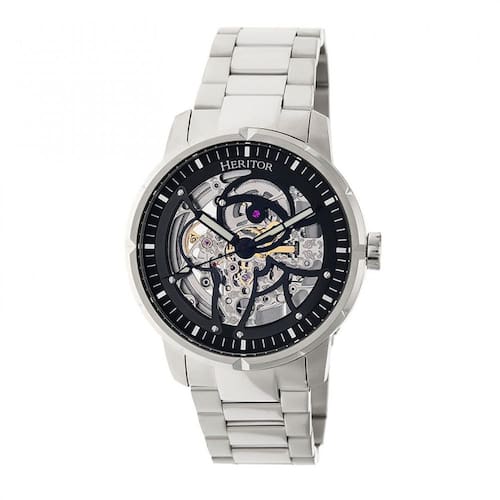 HERITOR Relógio masculino automático 'Ryder Skeleton' com movimento de joias 316L aço inoxidável de qualidade cirúrgica/cristal mineral revestido de safira e pulseira relógio, cor: prateado (modelo: HERHR4608), Prata/preto, pulseira