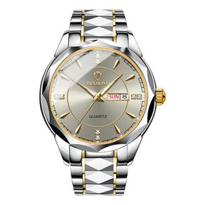 Calendário masculino impermeável em aço tungstênio relógio de quartzo Movimento do relógio - Movimento de quartzo - Diâmetro do movimento de quartzo - Diâmetro do relógio: 42 mm Espessura do relógio: 13 mm Largura da pulseira: 22 mm Comprimento da pulseira: 260 mm Peso do relógio - Peso do relógio: 70 g Material da caixa: material da pulseira de metal - Material da caixa: aço branco - Fivela -Aço branco Sombreamento especular: espelho de vidro aprimorado -Embalagem do produto em cristal: vidro de cristal Caixa de tampa - Caixa de lista Peso da embalagem: 50g Especificação da embalagem: 14,5 cm x 6,5 cm x 3 cm Tipo de fivela - Quantidade de embalagem: fivela/fivela Nível de impermeabilidade: 30m