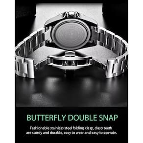 [Conforto e Segurança] Imagine usar um relógio que oferece tanto estilo quanto conforto. O fecho oculto com botão de pressão garante segurança, enquanto a pulseira em aço inoxidável é durável e elegante, perfeita para o uso diário sem comprometer o conforto.