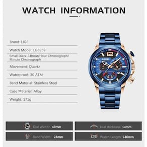 Relógio Masculino LIGE 8959 À Prova D'Água