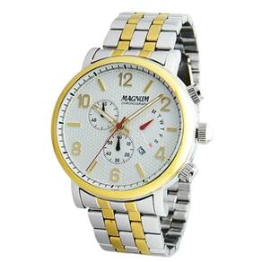 Relógio Masculino Magnum Cronógrafo MA35226S - Prata Relógio Masculino Magnum Cronógrafo Possui incrível design, deixando seu look mais despojado e elegante ao mesmo tempo. Além disso, foram confeccionados com material de primeiríssima qualidade, tornando-o resistente e durável. Características:ean: 7891511426624Marca: Magnum Modelo: MA35226SCor da caixa: PrataMaterial da caixa: AçoCor da Pulseira: Prata e douradoMaterial da pulseira: AçoVidro: Cristal MineralCor do bisel: DouradoFunções: Analógico, Cronógrafo, CalendárioResistência à água: 10 ATMDimensões da Embalagem:Altura: 10cmLargura: 14cmProfundidade: 16cmPeso: 0,500KgGarantia: 12 Meses Marca: Não Informado