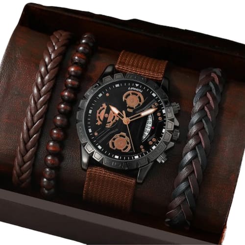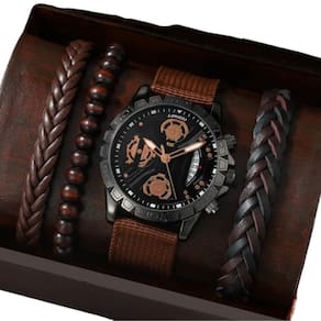Descubra a elegância e a praticidade do nosso Kit de Relógios e acessórios! Combinando funcionalidade e estilo, o relógio garante pontualidade com um design moderno, enquanto os acessórios complementam com elegância e sofisticação. Ideal para elevar qualquer look, é a escolha perfeita para presentear ou se presentear.