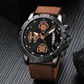 Material: Couro Cor: Marrom Comprimento do relógio: Aproximadamente 24 cm Não acompanha caixa Resistente à água Não é a prova d'água • Não utilizar produtos químicos para limpeza, tais como ceras, abrasivos, desengraxastes, pois, esses produtos poderão alterar o tratamento do relógio. Utilizar somente um pano macio e seco. • Evite expor seu relógio a variações bruscas e excessivas de temperatura. • Não deixe o relógio cair nem bater contra superfícies duras. • A resistência deve ser verificada novamente após qualquer impacto forte.