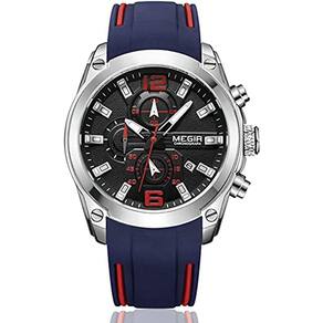 Relógio masculino MEGIR, cronógrafo esportivo, relógio de quartzo luminoso, relógios modernos com pulseira de silicone para homens