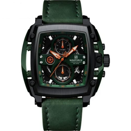 Especificações [Design e Estilo] Este relógio esbanja elegância e modernidade com seu formato tonneau e visor de hardlex resistente. Incorporando elementos da moda casual, está disponível com um mostrador de diâmetro entre 45mm e 49mm. [Funcionalidades Supremas] Equipado com cronômetro, alarme e calendário completo, além de mãos luminosas, assegura que você nunca perca um segundo de suas atividades, dia ou noite. [Durabilidade e Conforto] Sua pulseira de mede 26cm de comprimento e entre 15mm e 19mm de largura, garantindo ajuste perfeito e conforto sem igual seja qual for o tamanho do seu pulso. [Desempenho Resiliente] Conta com resistência à água de até 3 Bar e é construído com material de liga, assegurando que está preparado para enfrentar qualquer condição e se manter funcional. [Precisão de Movimento] Operando com um mecanismo Quartz, este relógio precisão de tempo com confiabilidade, ideal para homens que buscam desempenhos exatos em suas vidas agitadas.