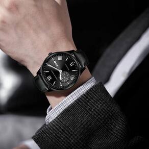 Com um design acentuado por acabamentos impecáveis, este relógio não é apenas um indicador de tempo, mas também uma declaração de moda e resolução. O mostrador robusto de 42mm está envolto em um mostrador arredondado que adiciona um toque de classe e resistência. Equipado com uma pulseira de couro PU refinada, garante conforto absoluto sem sacrificar a durabilidade e a sofisticação.