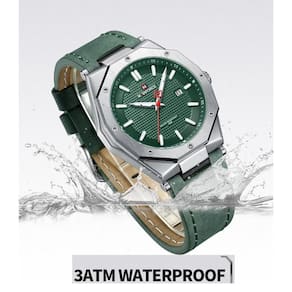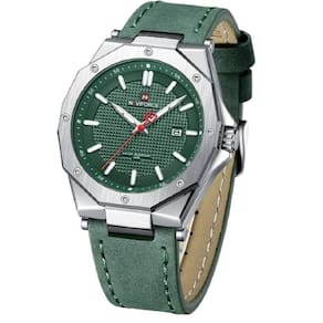 Relógio masculino naviforce pulseira couro nf9200 verde