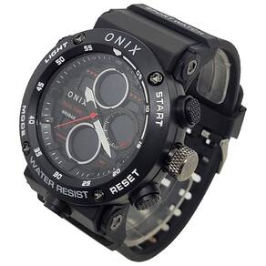 Relógio Masculino Onix AnaDigi OX116 PretoMarca: Onix Categoria: AnaDigi Analógico: Sim (1 Horário) Ponteiros Fluorescentes: Sim Digital: Sim (1 Horário) Calendário: Sim Despertador: Sim Mostra o Dia da Semana: Sim Mostra o Dia do Mês: Sim Cronômetro: Sim Contador Regressivo: Não Luz: Sim Cor da Iluminação: VerdeResistente à Água: 5 ATM (Pode ser utilizado para nadar no raso, por pouco tempo submerso) - Respingos: Sim - Chuva: Sim - Lavar Carro: Sim - Lavar Louça: Sim - Natação: Sim - Mergulho: Não Característica do Vidro: Acrílico Tipo de Fecho: Fivela Cor da Caixa: Preto Material da Caixa: Plástico Formato da Caixa: Redondo Diâmetro da Caixa: 49,00 (mm) Espessura da Caixa: 17,00 (mm) Cor da Pulseira: Preto Material da Pulseira: Silicone Largura da Pulseira: 22,00 (mm) Comprimento Máximo da Pulseira: 240,00 (mm) Alimentação: Bateria Interna Peso Líquido: 0,065 Kg Modelo: OX116 Cor Predominante: Preto Garantia: 12 MesesConteúdo da Embalagem: 01 Relógio 01 Embalagem 01 Termo de Garantia Ean: 7891368316932