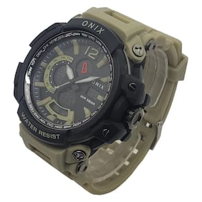 Relógio Masculino Onix AnaDigi OX124 Bege e Preto Marca: Onix Categoria: AnaDigi ógico: Sim 1 Horário Ponteiros Fluorescentes: Sim Digital: Sim 1 Horário Calendário: Sim Despertador: Sim Mostra o Dia da Semana: Sim Mostra o Dia do Mês: Não Cronômetro: Não Contador Regressivo: Não Luz: Sim Cor da Iluminação: Verde Resistente à Água: 5 ATM Pode ser para nadar no raso, por pouco tempo submerso - Respingos: Sim - Chuva: Sim - Lavar Carro: Sim - Lavar Louça: Sim - Natação: Sim - Mergulho: Não Característica do Vidro: Acrílico Tipo de Fecho: Fivela Cor da Caixa: Preto Material da Caixa: Plástico Formato da Caixa: Redondo Diâmetro da Caixa: 56,00 mm Espessura da Caixa: 18,00 mm Cor da Pulseira: Bege Material da Pulseira: Plástico Largura da Pulseira: 21,50 mm Comprimento Máximo da Pulseira: 240,00 mm Alimentação: Bateria Interna Peso Líquido: 0,060 Kg Modelo: OX124 Cor Predominante: Bege Cor Diferencial: Preto : 12 Meses Conteúdo da Embalagem: 01 Relógio 01 Embalagem 01 Termo de Marca: Não Informado Ean: 7891368317021