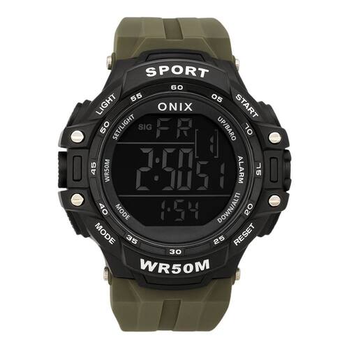 Relógio Masculino Onix Digital IT-373H Preto e CinzaMarca: Onix Categoria: Digital Analógico: Não Digital: Sim (1 Horário) Calendário: Sim Despertador: Sim Mostra o Dia da Semana: Sim Mostra o Dia do Mês: Sim Cronômetro: Sim Luz: Sim Cor da Iluminação: VerdeResistente à Água: 5 ATM (Pode ser utilizado para nadar no raso, por pouco tempo submerso) - Respingos: Sim - Chuva: Sim - Lavar Carro: Sim - Lavar Louça: Sim - Natação: Sim - Mergulho: Não Característica do Vidro: Acrílico Tipo de Fecho: Fivela Cor da Caixa: Preto Material da Caixa: Plástico Formato da Caixa: Redondo Diâmetro da Caixa: 51,00 (mm) Espessura da Caixa: 16,00 (mm) Cor da Pulseira: Cinza Material da Pulseira: Plástico Largura da Pulseira: 22,00 (mm) Comprimento Máximo da Pulseira: 260,00 (mm) Alimentação: Bateria Interna Peso Líquido: 0,056 Kg Modelo: IT-373H Cor Predominante: Preto Cor Diferencial: Cinza Garantia: 12 MesesConteúdo da Embalagem: 01 Relógio 01 Embalagem 01 Termo de Garantia