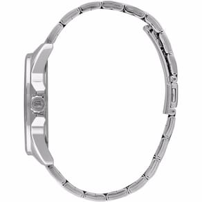 - Resiste à água: 5 ATM - Composição do Vidro: cristal mineral - Material da Caixa: aço - Material da Pulseira: aço - Duração média da bateria: 1 ANO