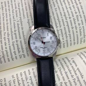 Vidro: Cristal MineralFunções: Analógico, CalendárioResistencia à água: 50 MCaracterísticas: com caixa Metal e pulseira COURODiâmetro da caixa: 4,3 cmFundo de Rosca