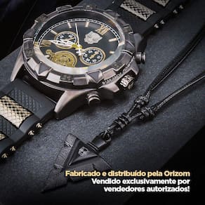 Possui leitura fácil e é perfeito para o dia a dia. Acompanhando o relógio, o colar preto traz um elemento marcante ao conjunto. Uma ótima opção para presentear em diversas ocasiões, expressando estilo com paixão pelo universo do Pantera Negra