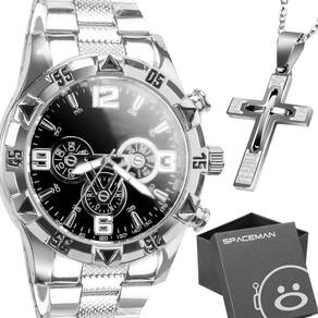 Kit Exclusivo de Acessórios Elegantes - Orizom Spaceman Relógio Analógico Prata - À Prova D'água e em Aço InoxAdquira agora um toque de sofisticação com nosso relógio analógico prata, destacado por um fundo preto elegante. Seu design à prova d'água garante durabilidade e funcionalidade, enquanto o material em aço inox confere resistência e estilo. Cordão em Aço Inox de 60cmComplemente seu visual com nosso cordão em aço inox de 60cm. Um acessório versátil que adiciona um toque contemporâneo e robusto ao seu estilo. Pingente em Forma de Cruz com Oração do Pai Nosso Gravado a LaserUm símbolo de fé e elegância, nosso pingente em forma de cruz é gravado a laser com a bela oração do Pai Nosso. Um toque espiritual e significativo para quem valoriza a espiritualidade. Caixa Orizom Spaceman PremiumGuarde seu relógio com estilo e segurança na nossa exclusiva caixa Orizom Spaceman. Fabricada com materiais premium, oferece proteção e apresentação impecáveis para o seu relógio.Ideal para Presentear Quem Você Ama!Surpreenda seus entes queridos com este conjunto único de acessórios que combina elegância, funcionalidade e significado espiritual. Seja para ocasiões especiais ou simplesmente para expressar seu carinho, este kit é a escolha perfeita.Observação Importante:Todos os itens deste kit são cuidadosamente selecionados para oferecer qualidade e estilo. O relógio é resistente à água, proporcionando versatilidade no uso diário.Aproveite Este Kit Exclusivo Orizom Spaceman para Elevar Seu Estilo e Expressar Seus Sentimentos!