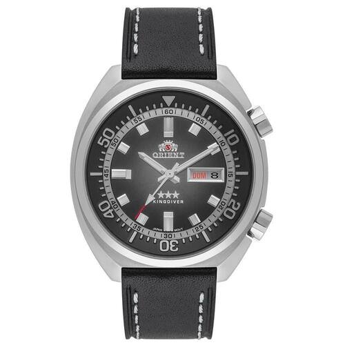 Características Composição do Vidro: Cristal Mineral Material da Caixa: Aço Inox Cor da Caixa: Prata Material da Pulseira: couro Cor da Pulseira: preto Linha: 3 Estrelas King Diver Maquina: Automático e 21 Rubis Fundo da maquina: Rosca Fechado Mostrador: Fundo grafite degrade