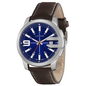 Relógio masculino prata lince pulseira de couro com data + relógio lince mrc4708l d2nx