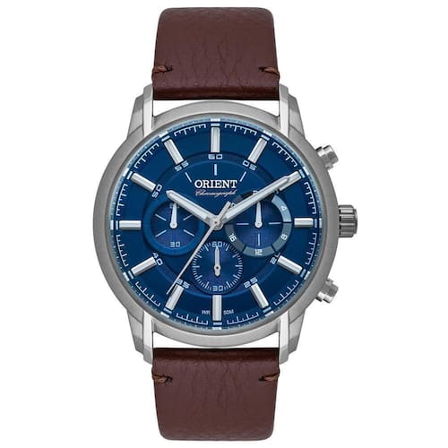 Relógio Masculino Prata Orient Pulseira De Couro Cronógrafo