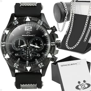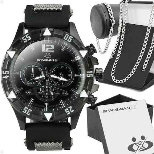 - Caixa Premium Orizom Spaceman X: Acompanha uma caixa premium para acomodar o relógio e os acessórios, garantindo uma apresentação elegante e sofisticada ao presente.