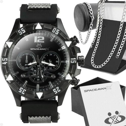 Relogio Masculino Preto + Cordão Prata Grumet + Pulseira Kit Especial Orizom Spaceman X para Presentear Quem Você Ama!! Surpreenda aquela pessoa especial em sua vida com este kit exclusivo, composto por: